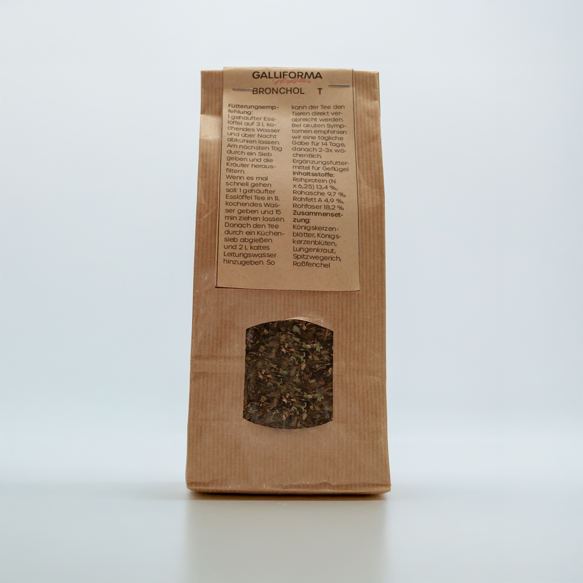 Eine Mischung aus ausgewählten Kräutern zur Unterstützung der Schleimlösung bei Atemwegsproblemen. Auch als akutes Hilfsmittel bei beginnendem Schnupfen könnte es eingesetzt werden. Tee aufkochen und über Nacht ziehen lassen, wenn er abgekühlt ist als Trinkwasser den Tieren anbieten. Jeden Tag frisch aufbrühen.