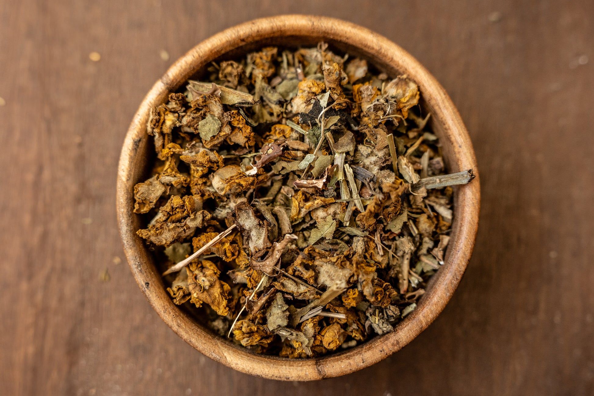 Unsere ausgewählte Kräutermischung mit Königskerzenblättern, Königskerzenblüten, Lungenkraut, Spitzwegerich und Roßfenchel unterstützt die Atemwegsgesundheit von Hühnern, Wellensittichen und anderen Ziervögeln auf natürliche Weise.